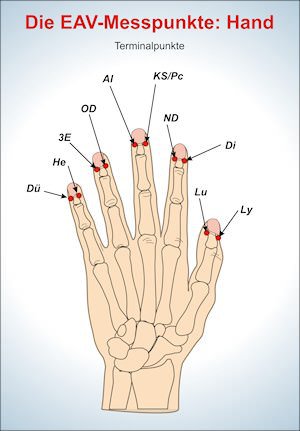 Die EAV, oder Elektroakupunktur nach Voll, ist ein diagnostisches Verfahren bei dem an Akupunkturpunkten an Händen und Füßen der aktuelle Zustand des Körpers gemessen wird. Desweiteren können mit dieser Technik Einflüsse von Medikamenten und/oder Allergenen Substanzen auf den Patienten ermittelt werden.