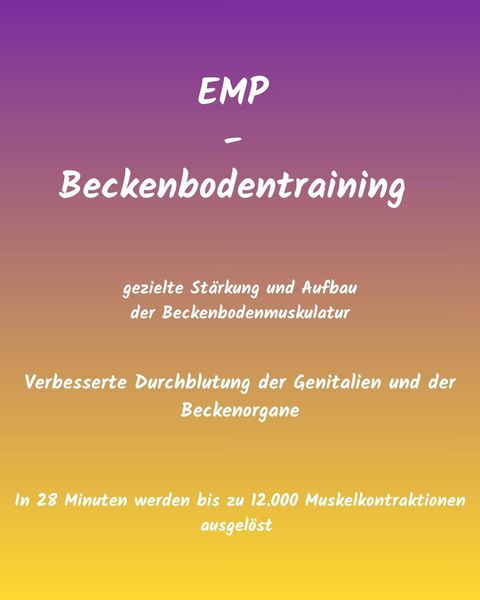 Das EMP - Beckenbodentraining ist eine moderne, schmerzfreie und äußerst wirksame Möglichkeit, die Beckenbodenmuskulatur zu stärken, während man entspannt auf einem bequemen Stuhl sitzt.